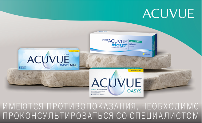 - ACUVUE OASYS MULTIFOCAL (6 линз) – это силикон-гидрогелевые двухнедельные контактные линзы от компании Johnson&Johnson, созданные специально для людей с возрастным изменением зрения – пресбиопией, гарантируя четкое зрение на всех расстояниях.