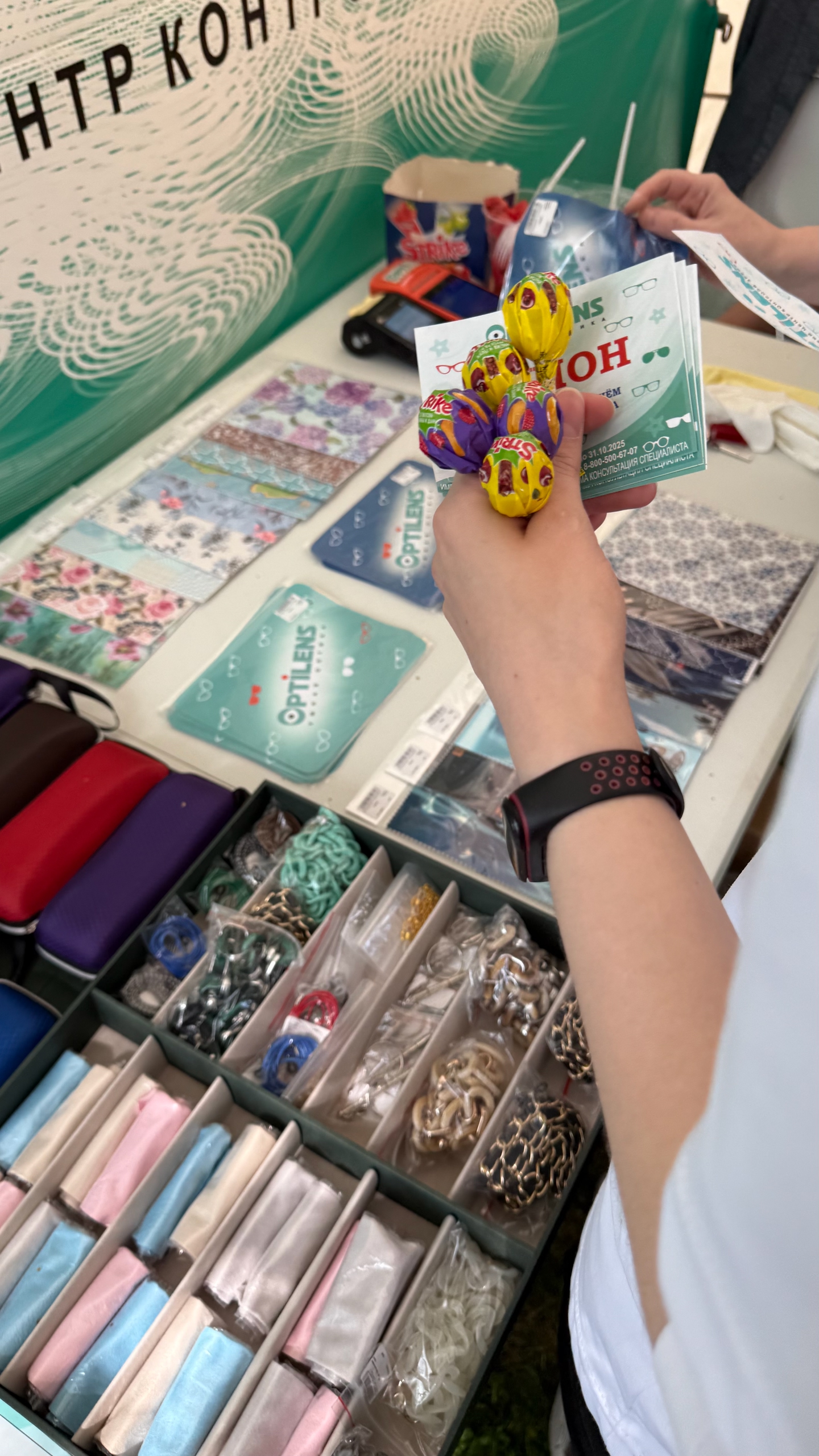 Не меньший интерес вызвали наши творческие мастер-классы, где каждый участник смог проявить свою индивидуальность и создать свои очки по уникальному дизайну. Солнцезащитные очки и стильные шопперы Optilens пользовались невероятным спросом и разлетелись как горячие пирожки, и нам безумно приятно, что мы смогли порадовать вас модными и полезными аксессуарами.