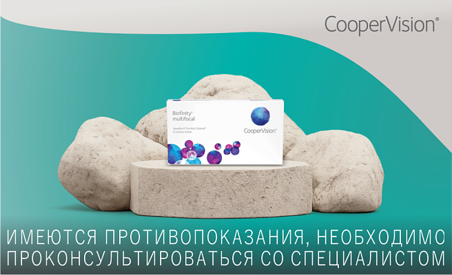 MULTIFOCAL BIOFINITY (3 линзы) – силикон-гидрогелевые мультифокальные линзы ежемесячной замены от компании CooperVision, предназначенные для пользователей с пресбиопией.